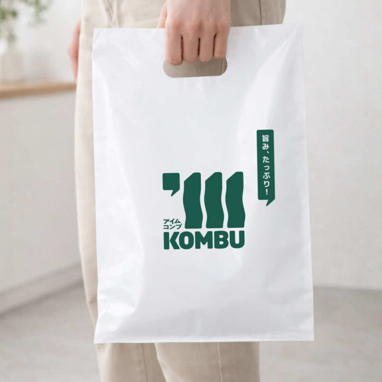 BtoCブランドの核として「m’ KOMBU(アイムコンブ)」を策定。「私は昆布です」という言葉から作り手の姿勢を人格として表現しました。ロゴは「m」の文字を昆布が揺れ動く姿に見立てたデザインとなっており、あふれだす昆布への愛情や健康へのこだわりを自ら語りだすブランドとして、今後の商品企画に一貫性をもたらすコンセプトとなっています。