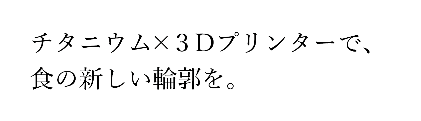「チタニウム×3Dプリンターで、食の新しい輪郭を。」というコピーにのせて、チタンという素材の新たな魅力とブランド価値を直感的に伝える設計としています。